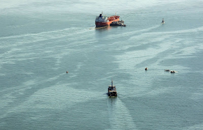As soon as I hung up the phone with Pierce I called over to the helicopter charter company that I use and set up a time for a flight. Not more than 5 minutes after I scheduled a noon flight, Pierce and I were looking at some raw aerial video online of the ship and the spill and we both realized that the oil slick wasn’t that big. At least it didn’t seem that way. We mulled over the flight and collectively decided against it. So, I cancelled it. Then I called him back and questioned our decision and then we decided to best be safe than sorry and I rescheduled the flight. Confusing, right?